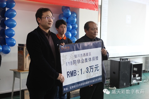 2012年12月24日,我校任立超校長組織IYB同學(xué)會集體為銀川百年職校捐贈價值1.3萬元的物品。捐贈中,任立超校長說:“這是我人生中第一次組織策劃的公益活動,雖然捐贈的資金并不是很多,但也是我們IYB同學(xué)會每位同學(xué)的一點心意。今年我將竭盡全力調(diào)動身邊資源策劃一場更大的捐贈活動,希望能夠讓更多需要幫助的學(xué)子完成學(xué)業(yè)。同時,盛天彩從今年開始將開放一些動漫高級課程,免費為那些貧困家庭的孩子提供一個了解動漫制作、學(xué)習(xí)動漫制作的機會?!弊詈?,任立超校長對參與此次捐贈活動的IYB同學(xué)會的每一位同學(xué)表示再次的感謝。
