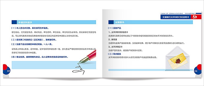 為交通銀行推廣太平洋BOSS信用卡設(shè)計(jì)宣傳冊(cè)頁。